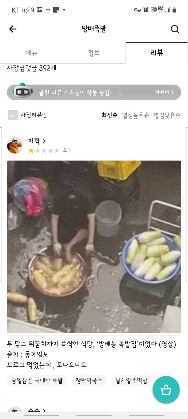 영상 속 업소는 서울시 서초구 방배동의 '방배족발' 로. 기본으로 나오는 어리굴젓은 작은 간장종지만큼나와요, 좀 적을수 있기때문에 3,000원주고 추가 시켜 먹을수 있습니다. 방배족발 무 세척 영상 (0) 17:07:23: 13:00~01:00 | 당신을 위한 좋은 일자리가 매일 10만개! 무 씻던 수세미로 발도 벅벅…식약처, '방배족발' 적발 2021.07.28.